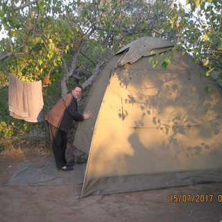 They can accommodate groups from 4-10 people at a time. The cost is +-R7000 per person depending on your travel company. Ours included two guides, two cooks and a seconding vehicle that drives your goods from camp to camp. You have three meals a day, and the food is great. Tea time is also included while on the mountain bikes and you get muffins/tea and coffee on the ride. Water is included, there is enough water for bottles, drinking, cooking, cleaning and showers, you don’t have to worry about packing additional water. Snacks to keep sugar levels up are recommended, but the cycling is not very difficult. An unfit person with limited skills can definitely enjoy this experience as much as the skilled fit person. The average pace is slow as this is a tour and not a race. (10km/h) The terrain is flat with a few river crossings that have loose sand. A MUST! Tubeless tyres. This is Africa! The guides do have pumps and spares with them, but it is recommended to take your own. The follow vehicle goes from site to site with your luggage, you don’t have to carry anything except your water bottles, snacks and sunscreen on the bike.